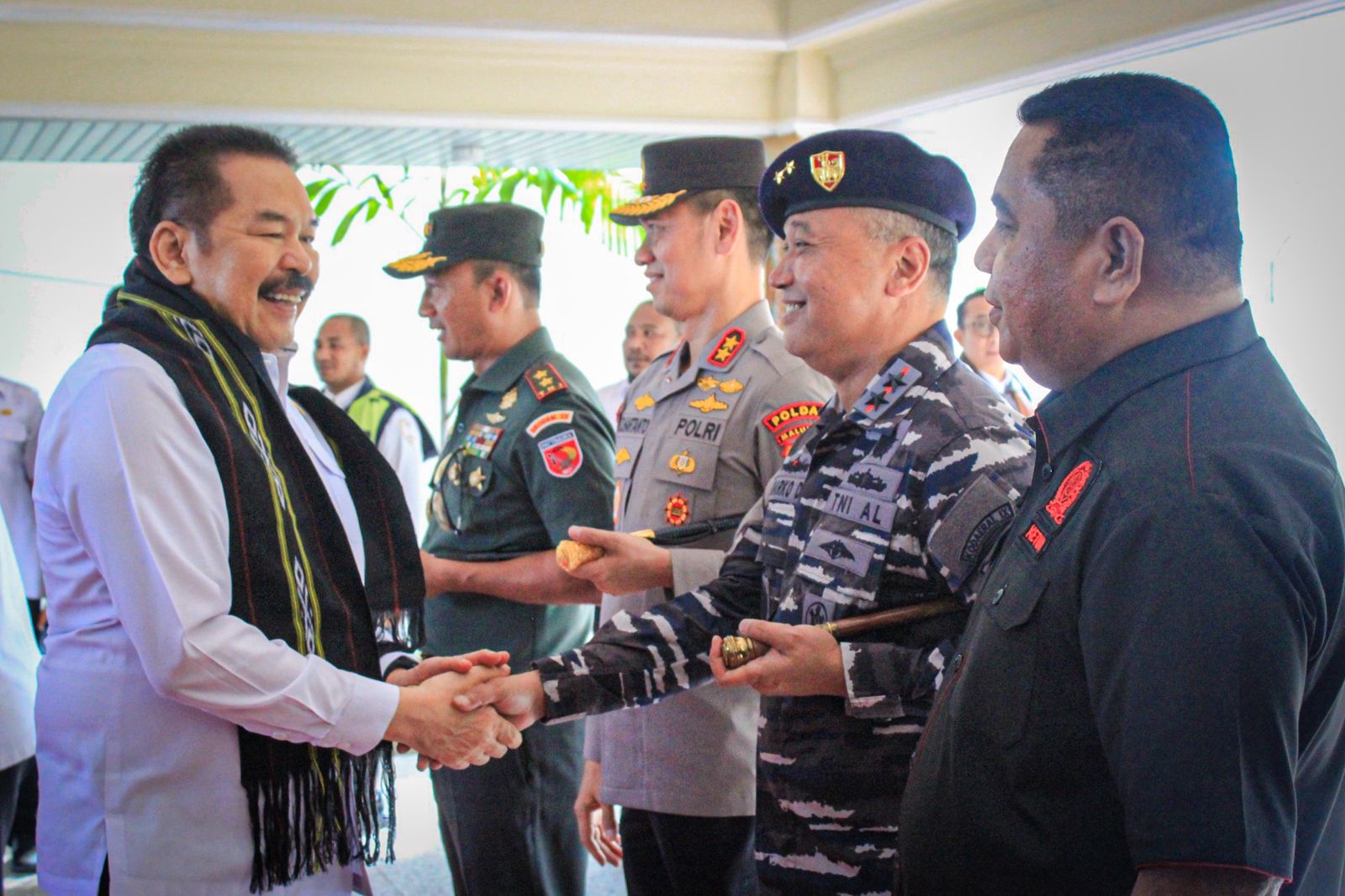 Kedatangan Jaksa Agung RI beserta rombongan di Bandar Udara Pattimura Ambon disambut hangat oleh jajaran Forum Komunikasi Pimpinan Daerah (Forkopimda) antara lain Komandan Kodaeral IX Laksda TNI Hanarko Djodi Pamungkas, Pangdam XV/Pattimura Mayjen TNI Putranto Gatot Sri Handoyo, Kapolda Maluku Irjen Pol Dadang Hartanto, Kepala BIN Daerah Maluku Marsma TNI R. Harys Soeryo Mahendra, serta Gubernur Maluku.
