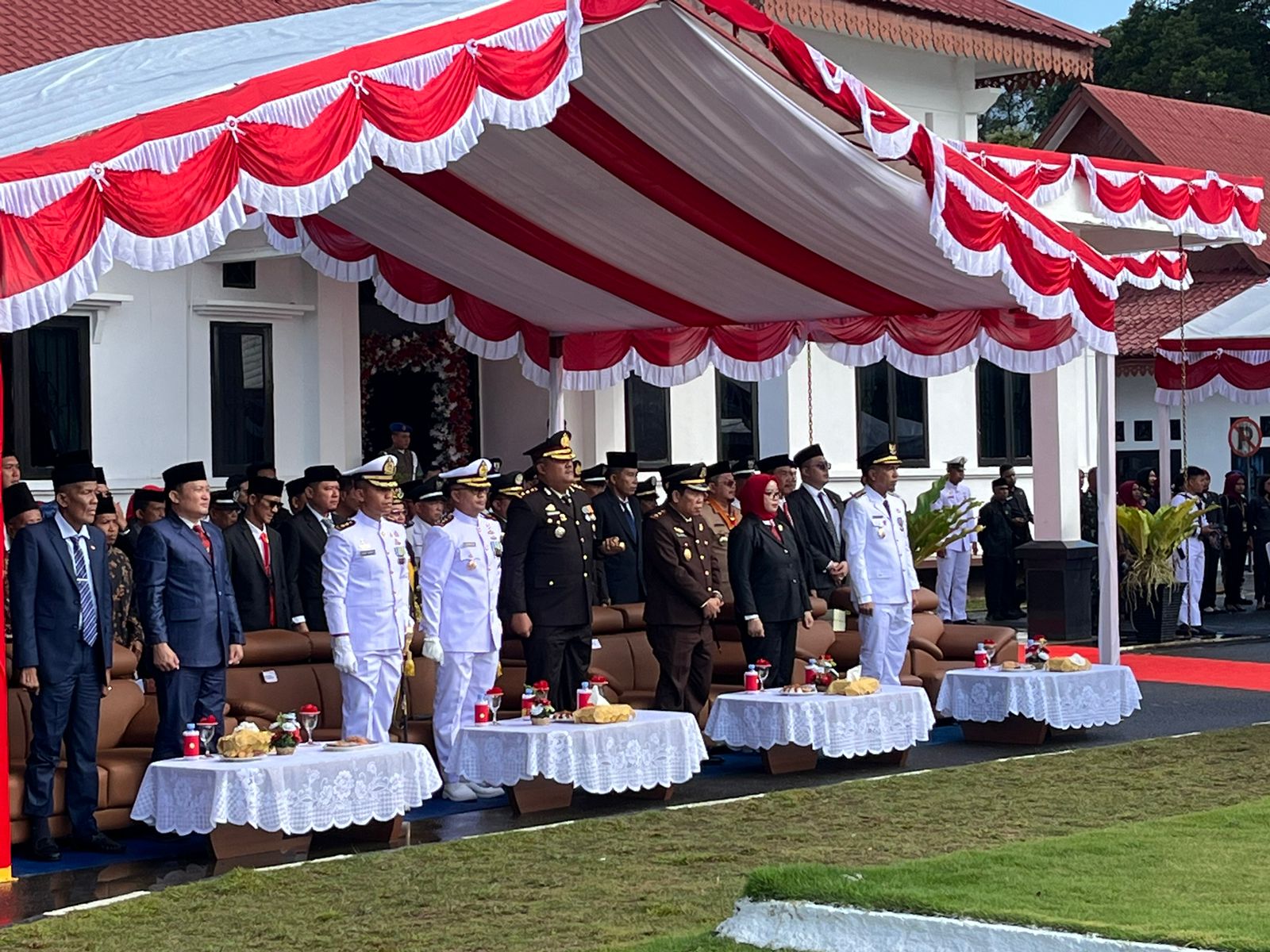 Pelaksanaan upacara berjalan tertib, aman, dan lancar. Selanjutnya, pada sore hari pukul 16.00 WIB dijadwalkan digelar upacara penurunan bendera yang juga akan berlangsung di Lapangan Kantor Bupati Lingga.