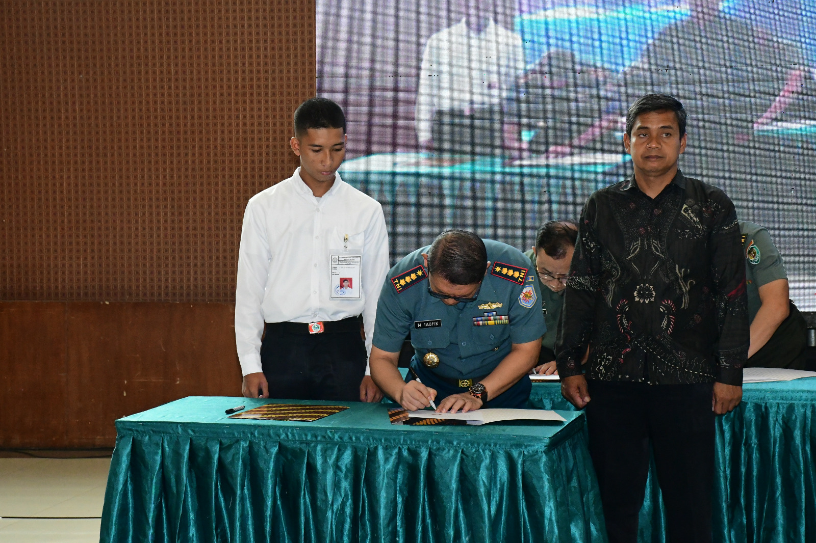 TNI AL, Bandung,- Komandan Lanal Bandung Kolonel Laut (P) Muhammad Taufik, M.Tr.Hanla., M.M., menghadiri Penandatanganan Pakta Integritas Calon Taruna Akademi TNI TA. 2025 yang dipimpin oleh Irdam III/Slw Brigjen TNI Trias Wijanarko, S.I.P., M.H.I., mewakili Pangdam III/Slw, bertempat di Aula Graha Tirta Siliwangi, Jalan Lombok No.10, Kota Bandung, Selasa (22/04/2025).